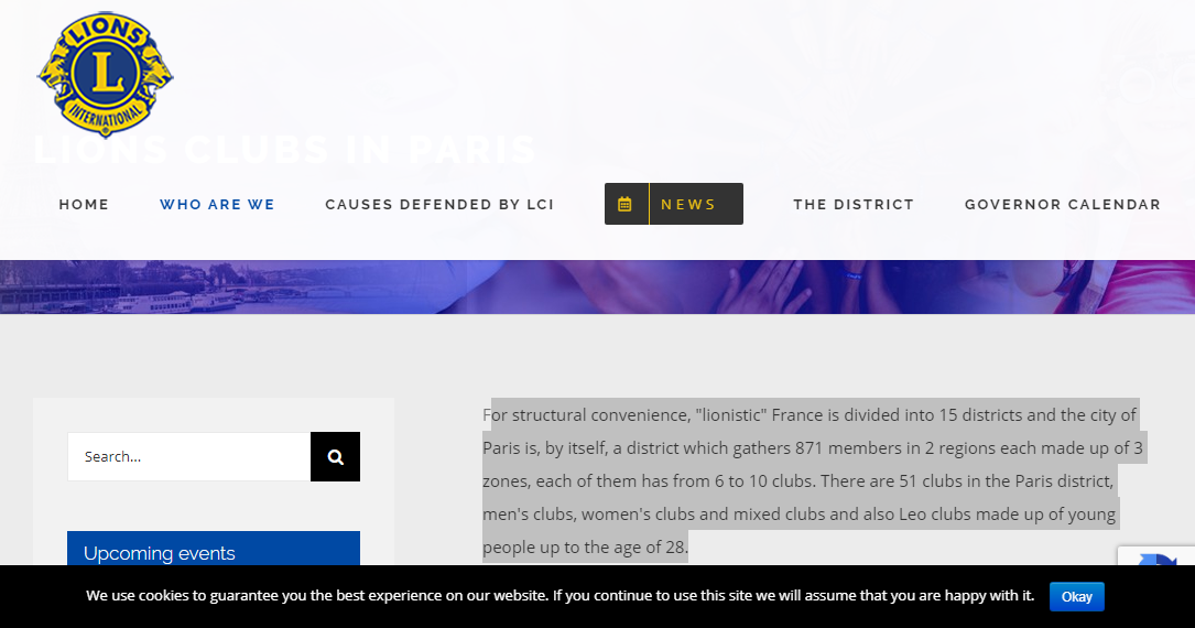 The District of Paris is an association governed by the law of 1901, so it has an office composed of a Governor (President), 2 Vice-Governors (Vice-President), a Secretary, a Treasurer and d Other managers: Immediate Past Governor (the President of the previous year), a chief of protocol, advisers to the Governor and the President of the Regions. The clubs are also governed by the 1901 law and have the same structure as the district with an office and a President. Those responsible: Governor, Vice-Governor, President of Regions, Presidents of Zones and Club Presidents are appointed for one year with an exercise from July 1 to June 30. Lions meet twice a month from September to July in statutory meetings.