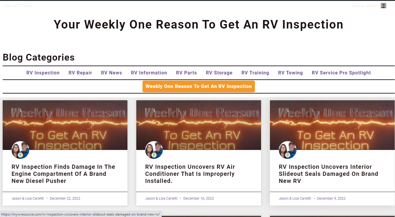 Lisa and Jason Carletti are full-time RVers and Master Certified RV Inspectors who saw a need for a resource to help their RV inspection and repair customers find other reputable RV service providers across the United States.